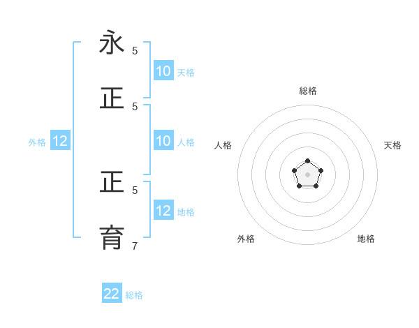永正 正育さんの総格は22画の1点!