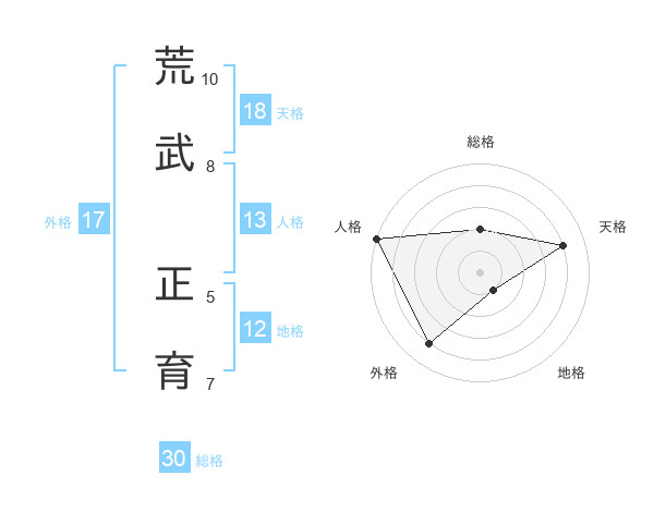 荒武 正育さんの総格は30画の2点!