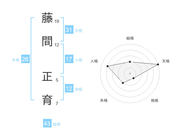 藤間 正育さんの天格は31画の5点!
