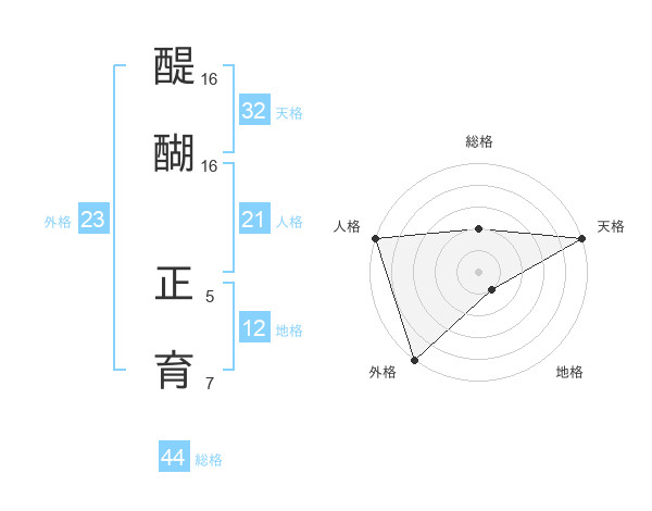 醍醐 正育さんの総格は44画の2点!