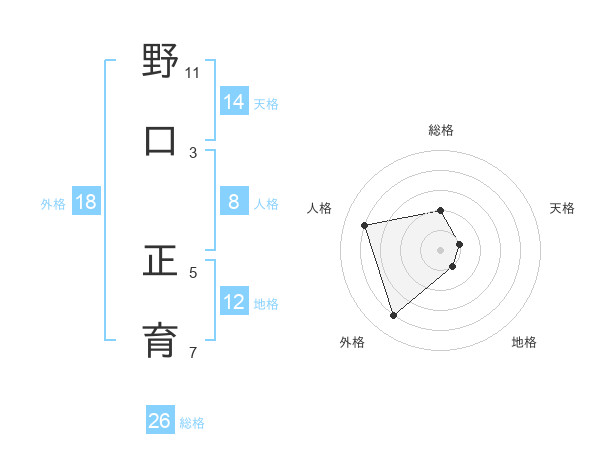 野口 正育さんの総格は26画の2点!