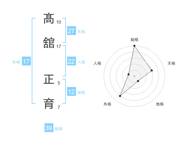 髙舘 正育さんの総格は39画の5点!