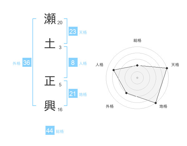 瀬土 正興さんの天格は23画の5点!