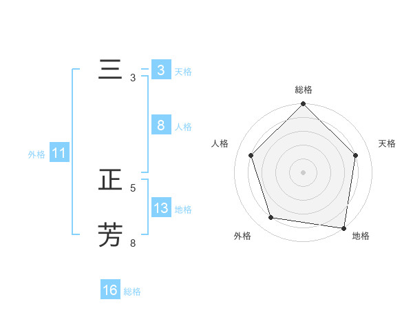 三 正芳さんの総格は16画の5点!
