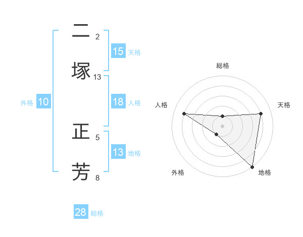 二塚 正芳さんを姓名の画数から五運を鑑定
