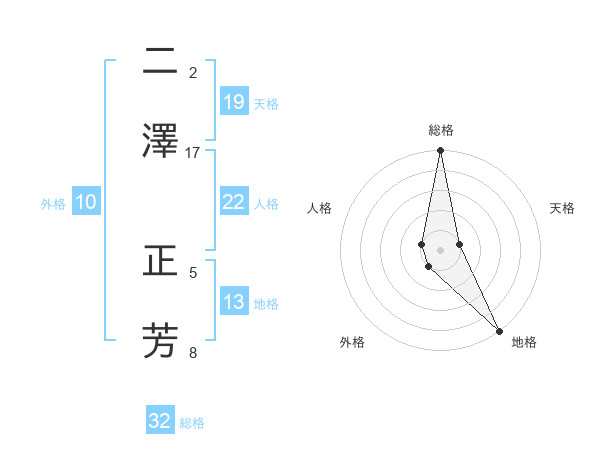 二澤 正芳さんの総格は32画の5点!