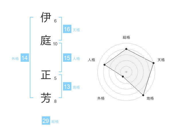 伊庭 正芳さんの人格は15画の4点!