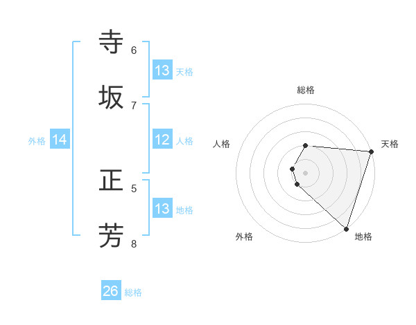 寺坂 正芳さんの天格は13画の5点!
