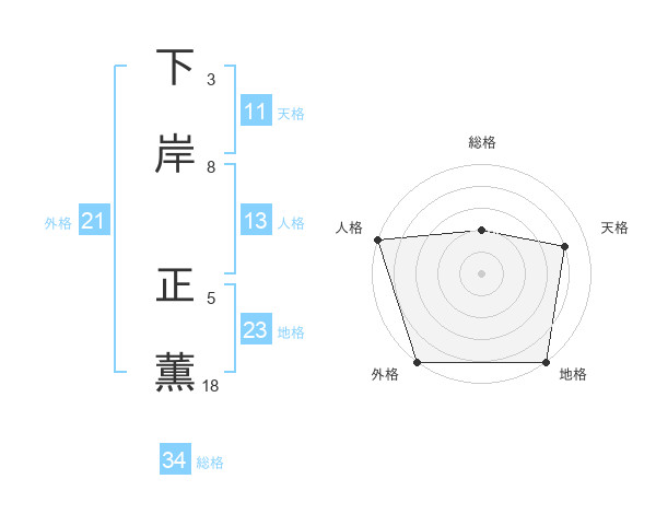 下岸 正薫さんを姓名の画数から五運を鑑定