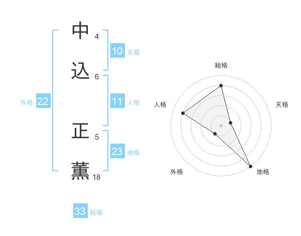 中込 正薫さんの総格は33画の4点!