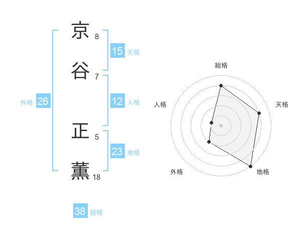 京谷 正薫さんの総格は38画の4点!
