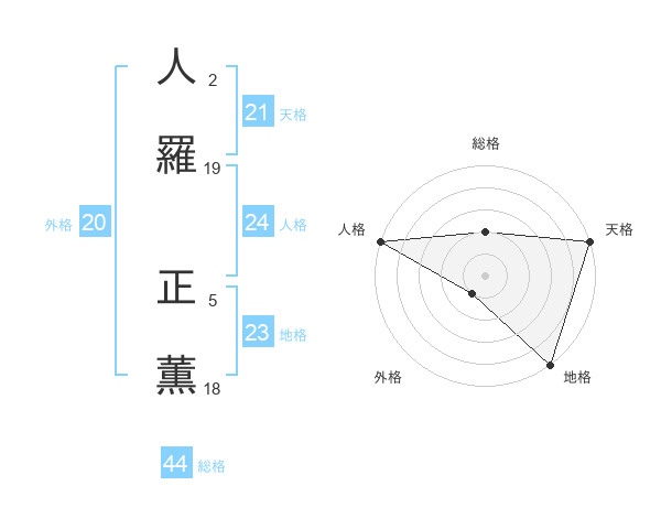 人羅 正薫さんの総格は44画の2点!