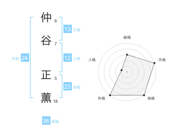 仲谷 正薫さんの天格は13画の5点!