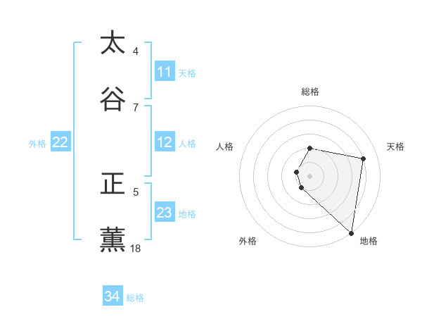 太谷 正薫さんを姓名の画数から五運を鑑定