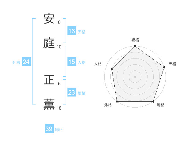 安庭 正薫さんの天格は16画の5点!