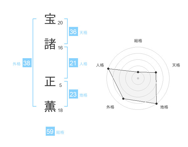 宝諸 正薫さんの天格は36画の3点!