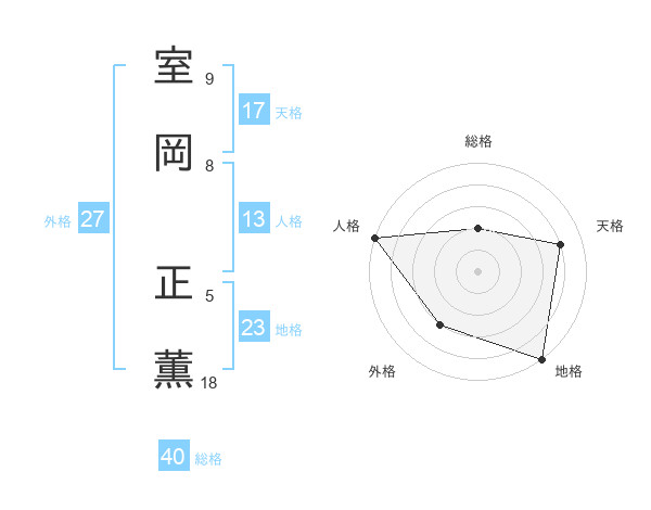 室岡 正薫さんを姓名の画数から五運を鑑定