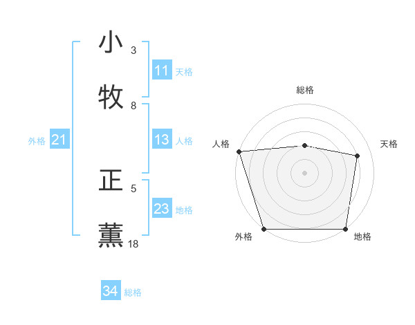 小牧 正薫さんを姓名の画数から五運を鑑定