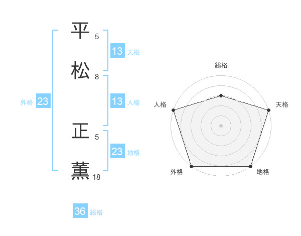 平松 正薫さんの外格は23画の5点!