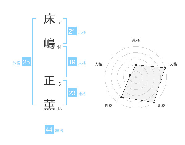 床嶋 正薫さんを姓名の画数から五運を鑑定