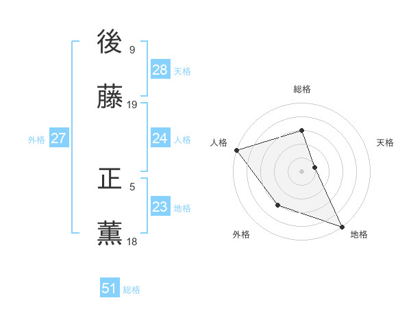 後藤 正薫さんの総格は51画の3点!