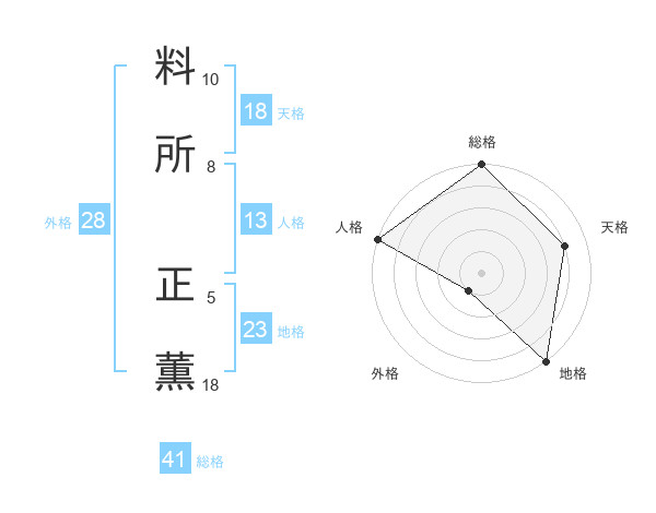 料所 正薫さんの天格は18画の4点!