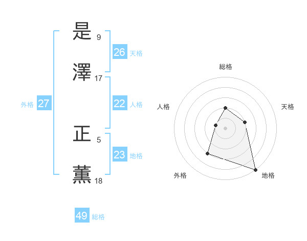 是澤 正薫さんの地格は23画の5点!