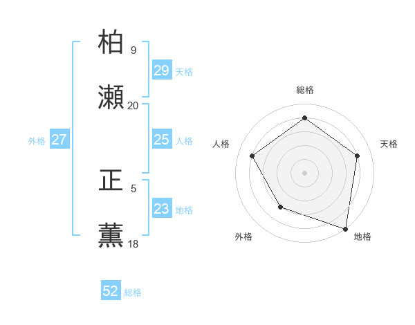 柏瀬 正薫さんを姓名の画数から五運を鑑定