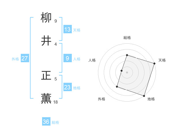 柳井 正薫さんを姓名の画数から五運を鑑定
