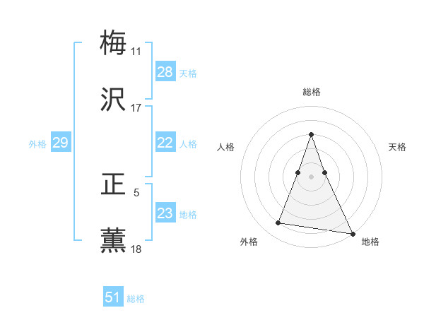 梅沢 正薫さんの総格は51画の3点!