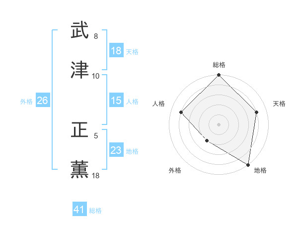 武津 正薫さんの総格は41画の5点!