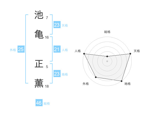 池亀 正薫さんの天格は23画の5点!