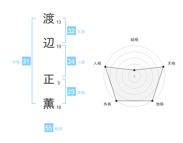 渡辺 正薫さんの外格は31画の5点!