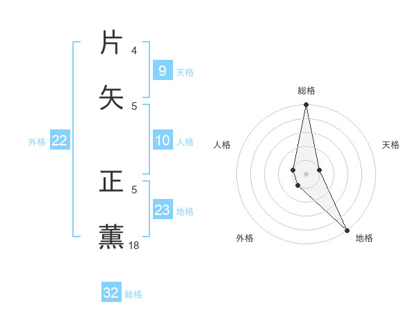 片矢 正薫さんの総格は32画の5点!