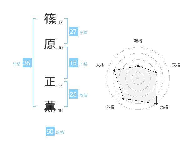 篠原 正薫さんを姓名の画数から五運を鑑定