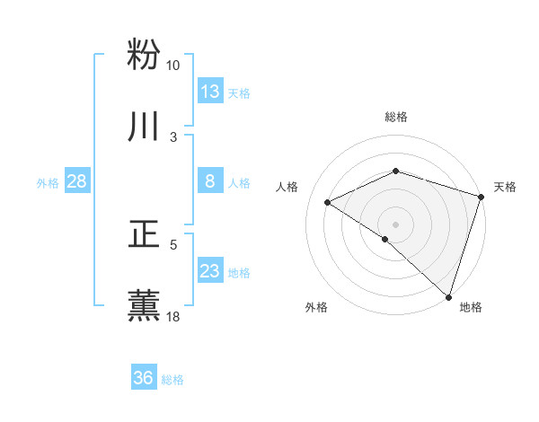 粉川 正薫さんを姓名の画数から五運を鑑定