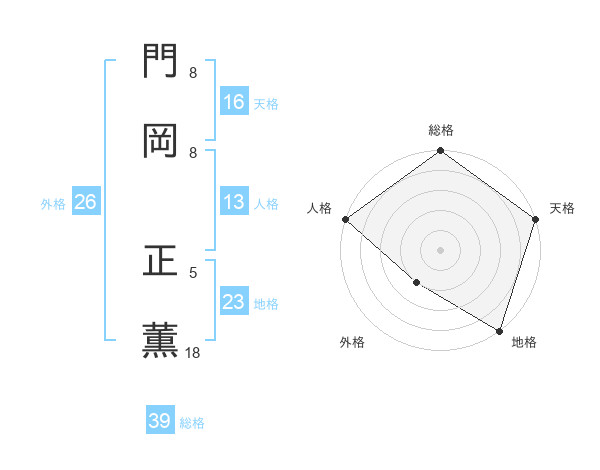 門岡 正薫さんを姓名の画数から五運を鑑定