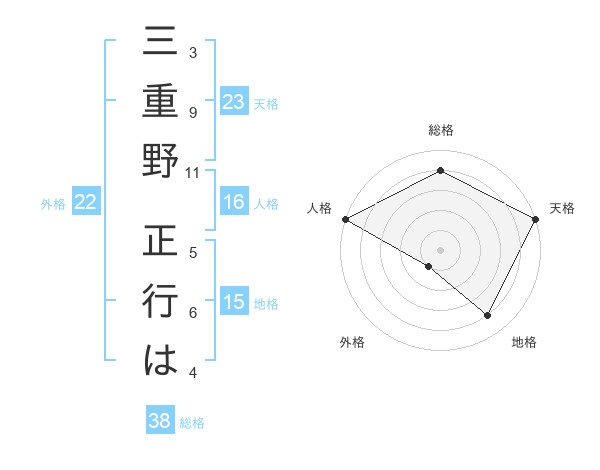 三重野 正行はさんを姓名の画数から五運を鑑定