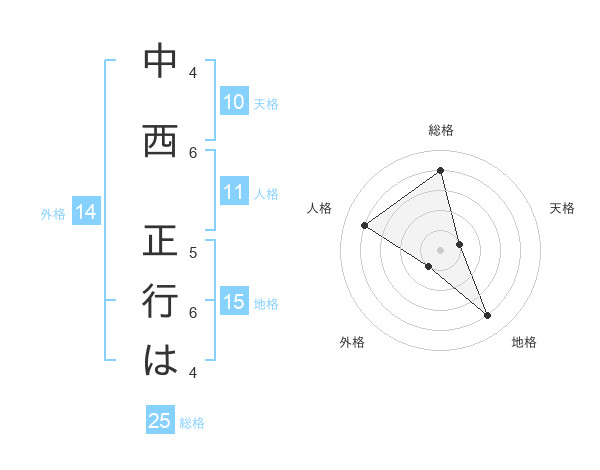 中西 正行はさんの総格は25画の4点!