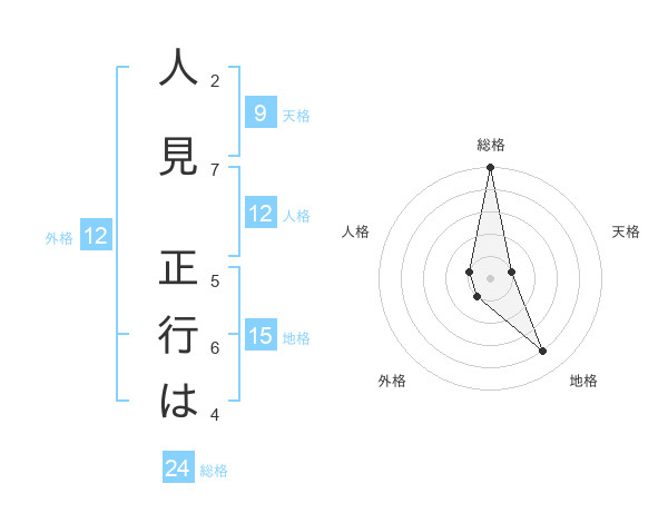 人見 正行はさんの総格は24画の5点!