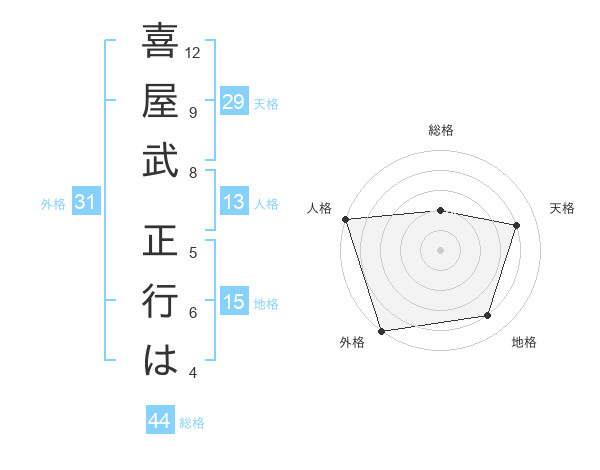 喜屋武 正行はさんの地格は15画の4点!