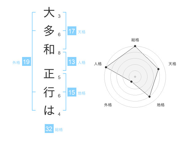 大多和 正行はさんを姓名の画数から五運を鑑定
