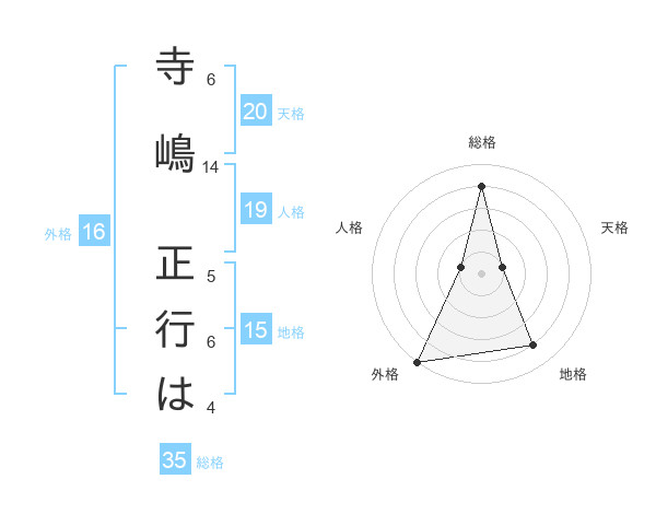 寺嶋 正行はさんの外格は16画の5点!