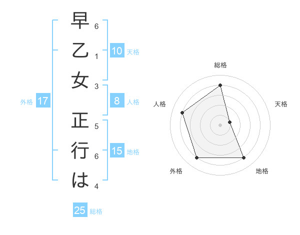 早乙女 正行はさんを姓名の画数から五運を鑑定