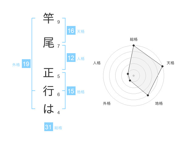 竿尾 正行はさんを姓名の画数から五運を鑑定