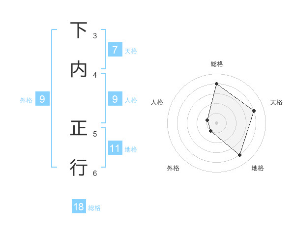 下内 正行さんの総格は18画の4点!