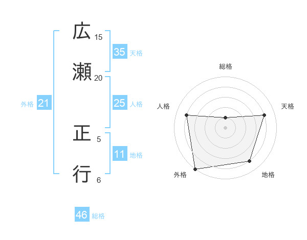 広瀬 正行さんを姓名の画数から五運を鑑定