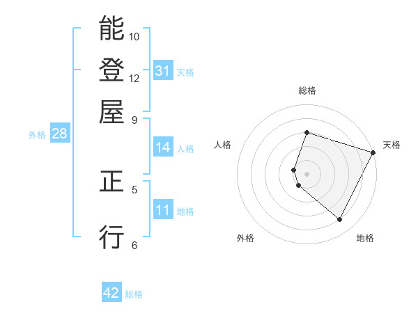 能登屋 正行さんの総格は42画の3点!