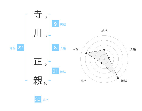 寺川 正親さんの外格は22画の1点!
