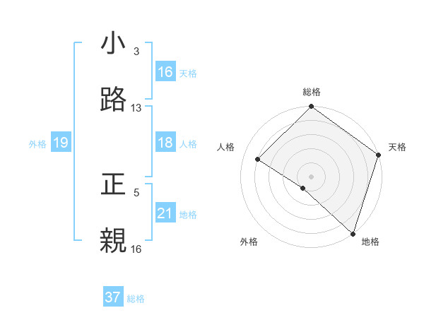 小路 正親さんの総格は37画の5点!